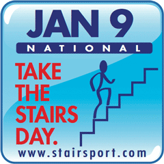 1/8/2013: Tomorrow (Wednesday, 1/9/2013) is "Take the Stairs" Day, courtesy of stairsport.com. But let's make every day "Take the Stairs" Day starting now!